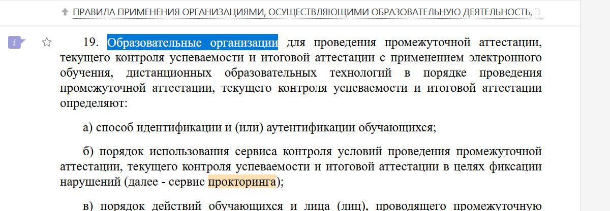 Также в открытых источниках можно встретить споры о том, кому нужен прокторинг при подаче заявки на лицензию. В общем смысле нормативный акт, регулирующий наличие прокторинга, в своем названии ссылается на организации, осуществляющие образовательную деятельность, т. е. ООО, ИП и т. д. Поэтому если вы планируете подавать заявку на лицензию, будьте готовы к требованию лицензирующего органа организовать систему прокторинга в вашем проекте. К тому же, почти все формы заявления соискателей на получение лицензии содержат раздел, в который нужно внести информацию о прокторинге.