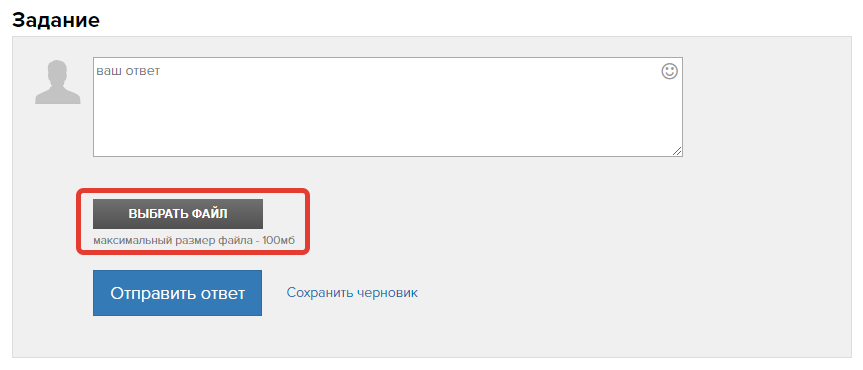 В поле «Файл» ученик может приложить к ответу один файл размером до 100 Мб.