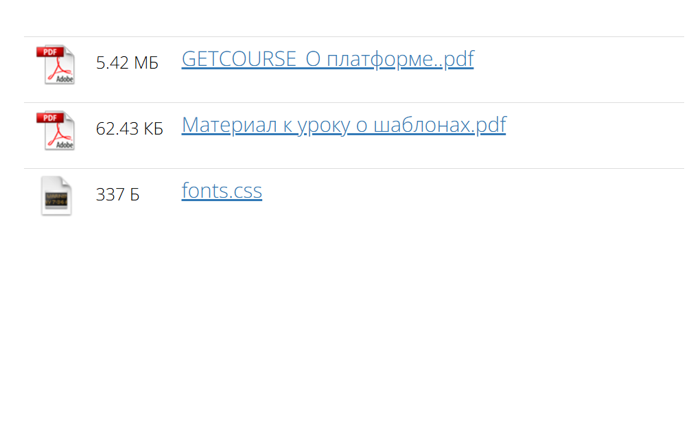 Файлы — блок, с помощью которого можно вставить на страницу ссылку на файл или несколько файлов из файлового хранилища. Для каждого файла формируется своя ссылка, поэтому пользователи смогут отдельно их просмотреть или скачать.