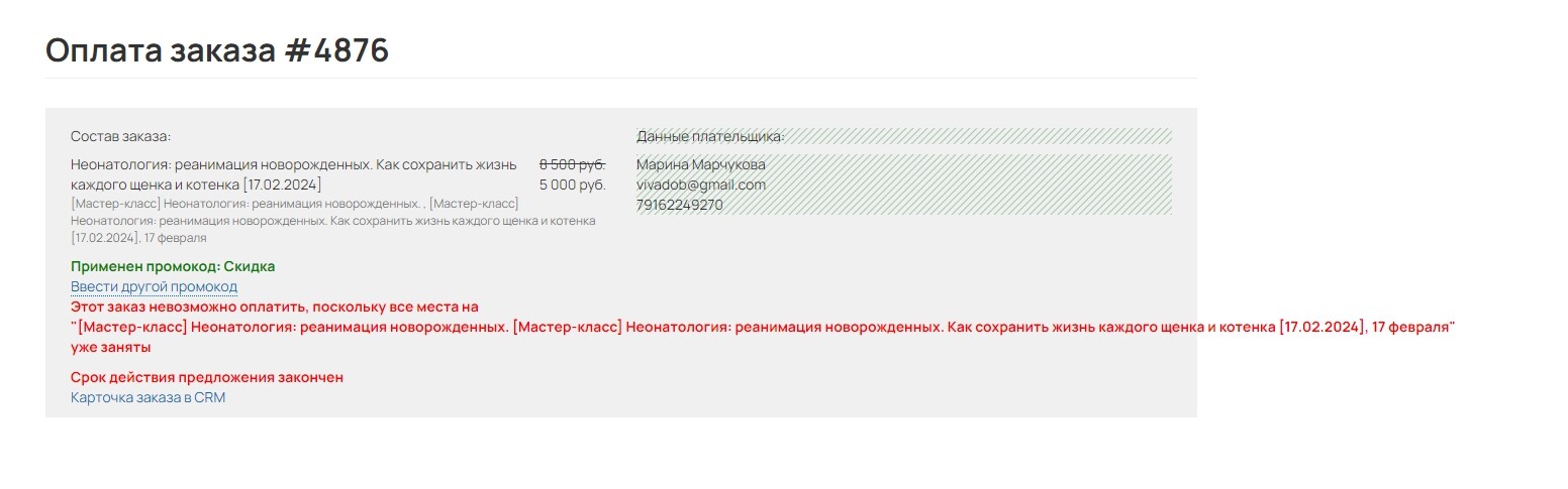Для детального анализа напишите, пожалуйста, нам в поддержку https://getcourse.ru/contacts , приложив ссылку на страницу оплаты заказа.