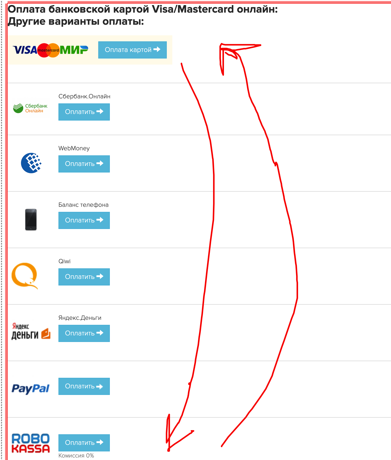 Стандартная страница оплаты