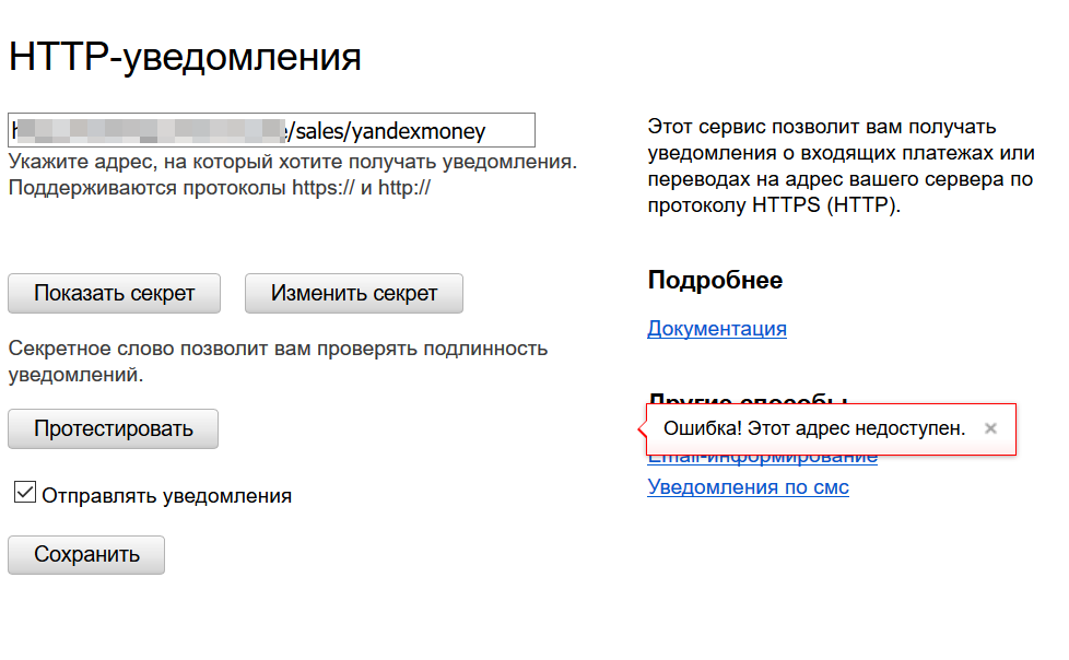 - Проставьте галочку в поле «Отправлять HTTP-уведомления» и нажмите на кнопку «Готово».