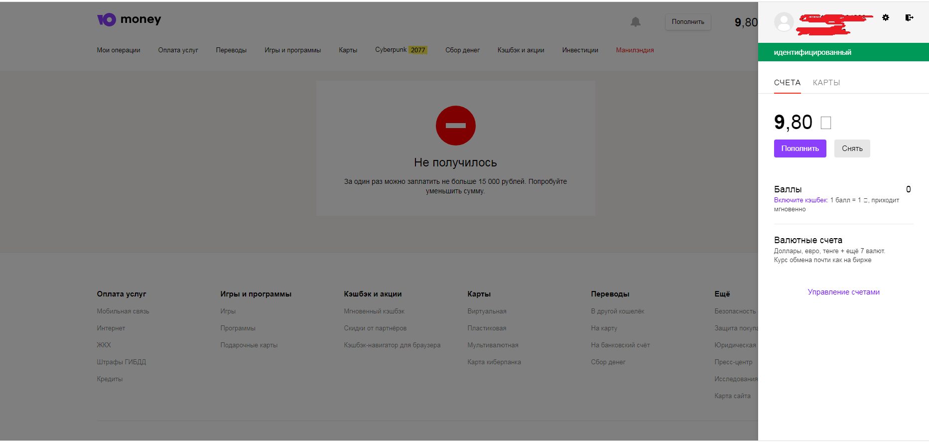 Столкнулись с проблемой, что более 15 тыс руб не дает оплатить...