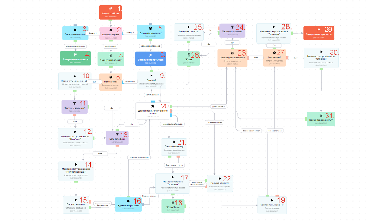 Цель этого процесса — организовать работу менеджера, напомнить и довести клиента до оплаты.