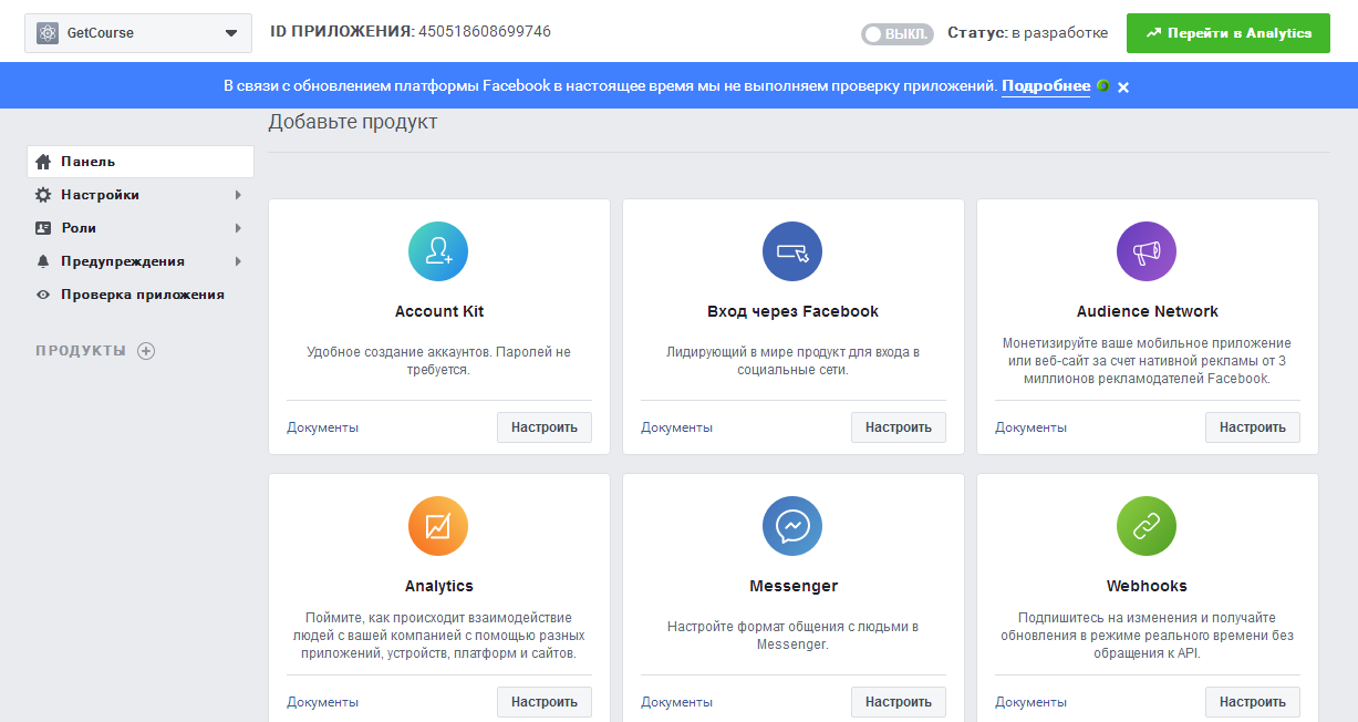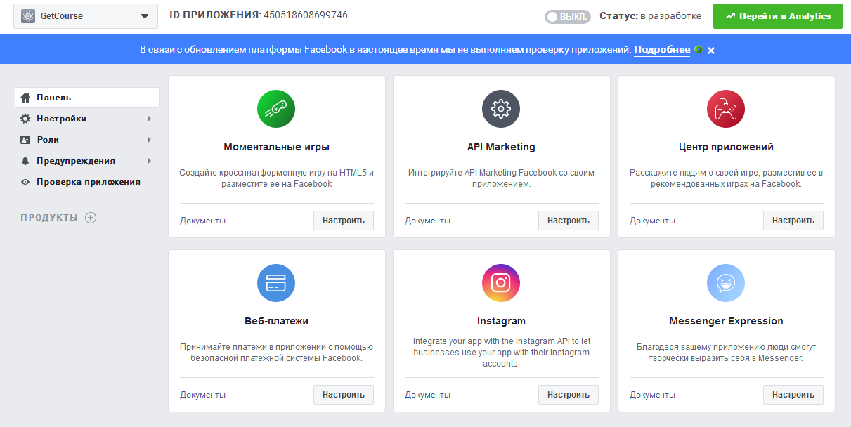 Теперь необходимо добавить данные о приложении в аккаунт GetCourse.