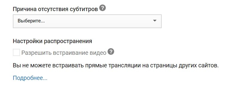 Встраивание трансляции обычно разрешено по умолчанию. Для того чтобы проверить и отредактировать настройки встраивания, в созданной трансляции перед началом эфира нажмите на кнопку «Изменить». В нижней части окна настроек на вкладке «Сведения» проверьте, установлена ли галочка «Разрешить встраивание видео».