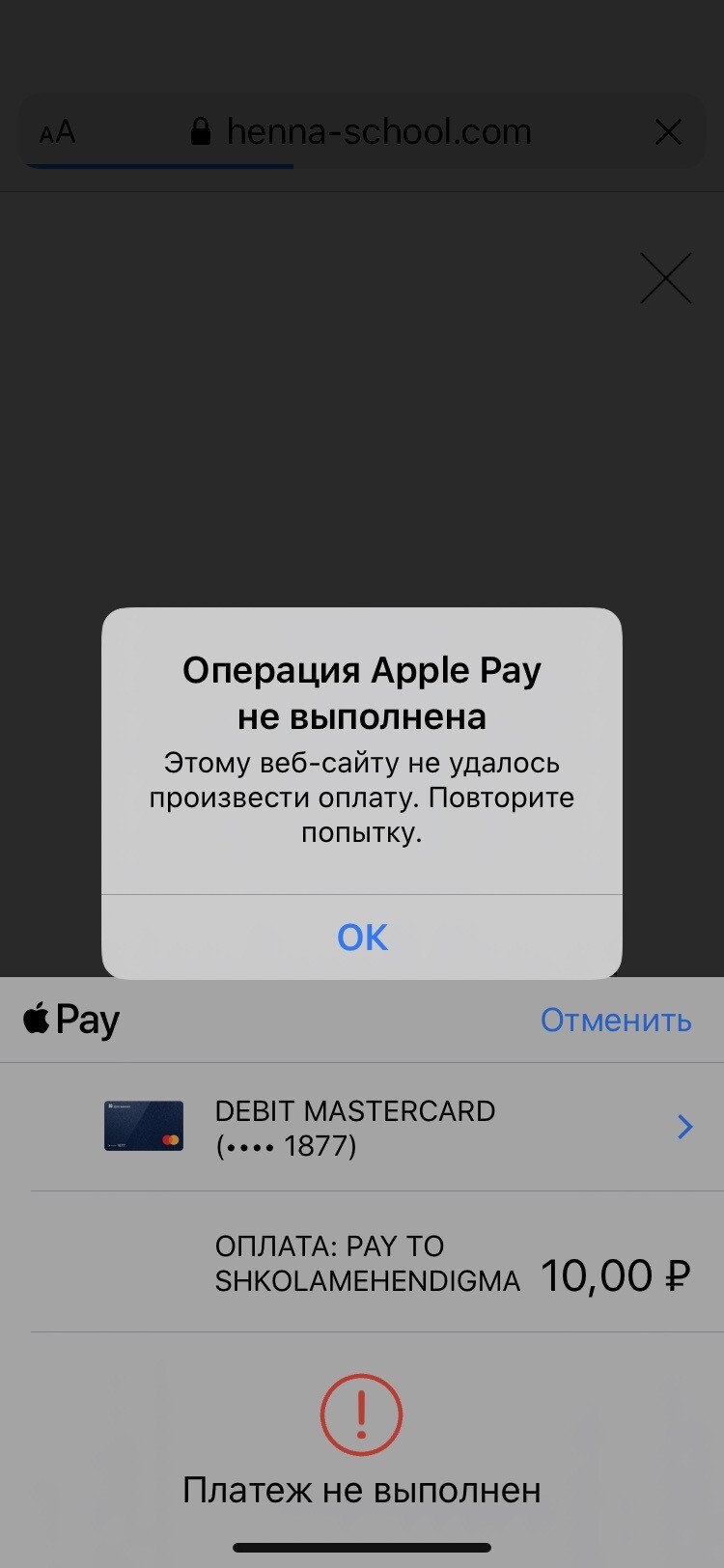 Напишите, пожалуйста обращение в нашу техподдержку https://getcourse.ru/contacts . В обращении укажите ссылку на заказ, который пытаетесь оплатить и скриншот отображаемой ошибки.
