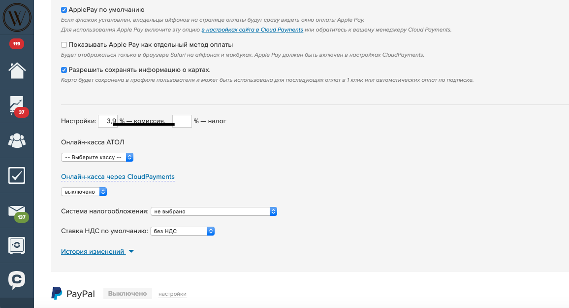 Настройки CloudPayments