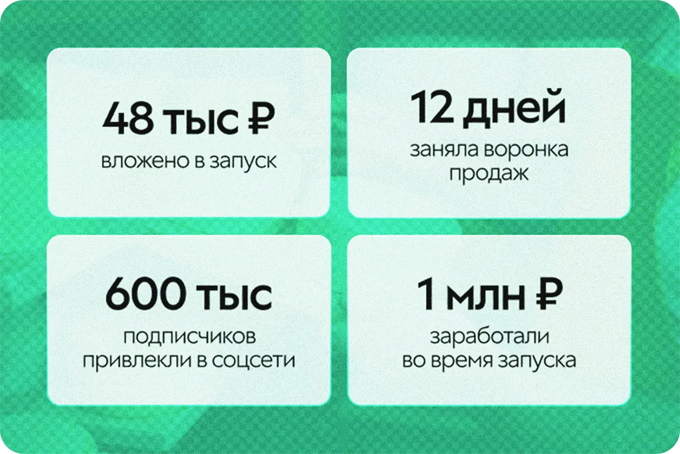 В результате первого запуска я получил предоплаты на миллион рублей и 500 тысяч рублей в кассе. При этом у меня не было рассрочки на курс или отдела продаж: только кнопка «Купить курс» и три тарифа. Это подтвердило, что ниша востребована, и я продолжил развивать школу.