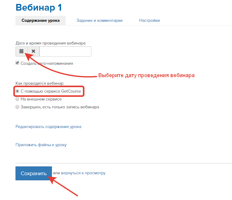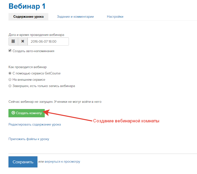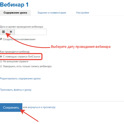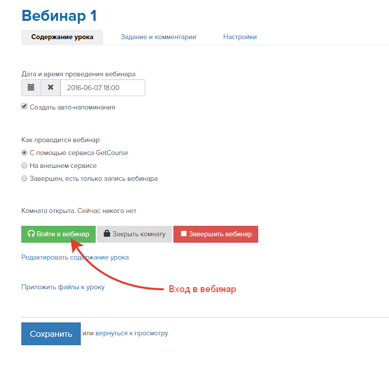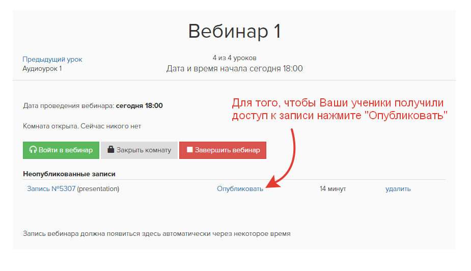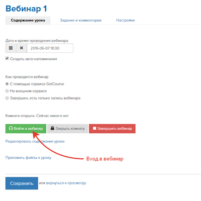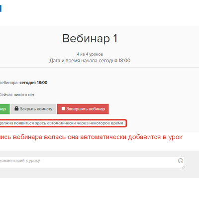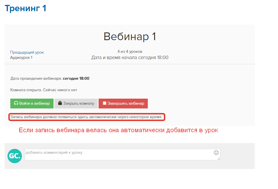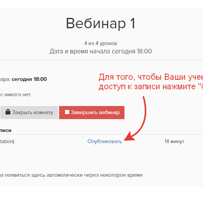 2. Вебинар, если велась запись, будет сохранён и появится на GetCourse автоматически. Все ваши ученики, у которых есть доступ, смогут просмотреть его в записи.