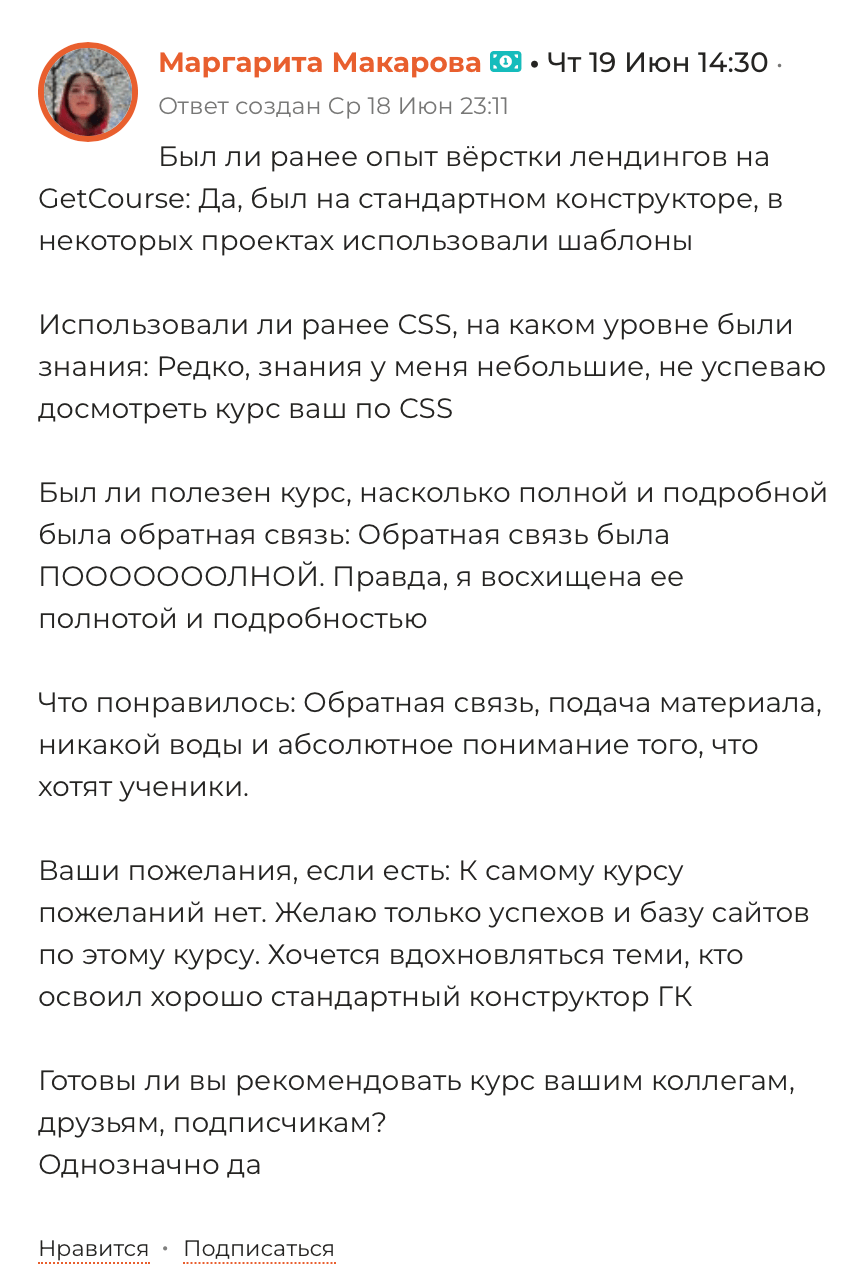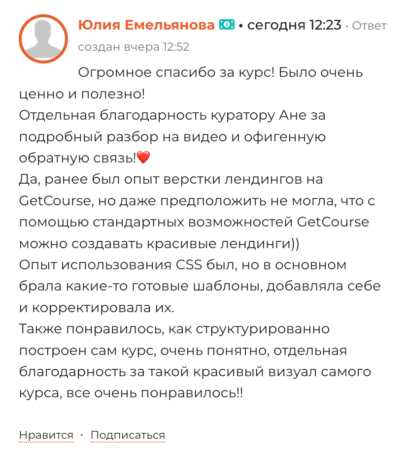 Отзывы о курсе «Конструктор сайтов GetCourse»